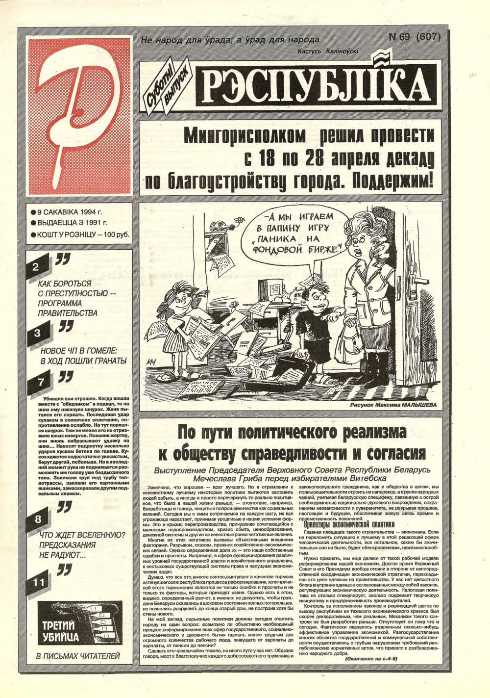«Рэспубліка» — газета для тых, хто самастойна прымае рашэнні. Заснавальнік - Савет Міністраў Рэспублікі Беларусь. Выдаецца з чэрвеня 1991. Газета выходзіць 250 разоў у год. Аўтары апублікаваных матэрыялаў нясуць адказнасць за падбор і дакладнасць фактаў, іх меркаванні неабавязкова адлюстроўваюць пункт гледжання рэдакцыі. Рукапісы, фотаздымкі і малюнкі не рэцэнзуюцца I не вяртаюцца. Болей »