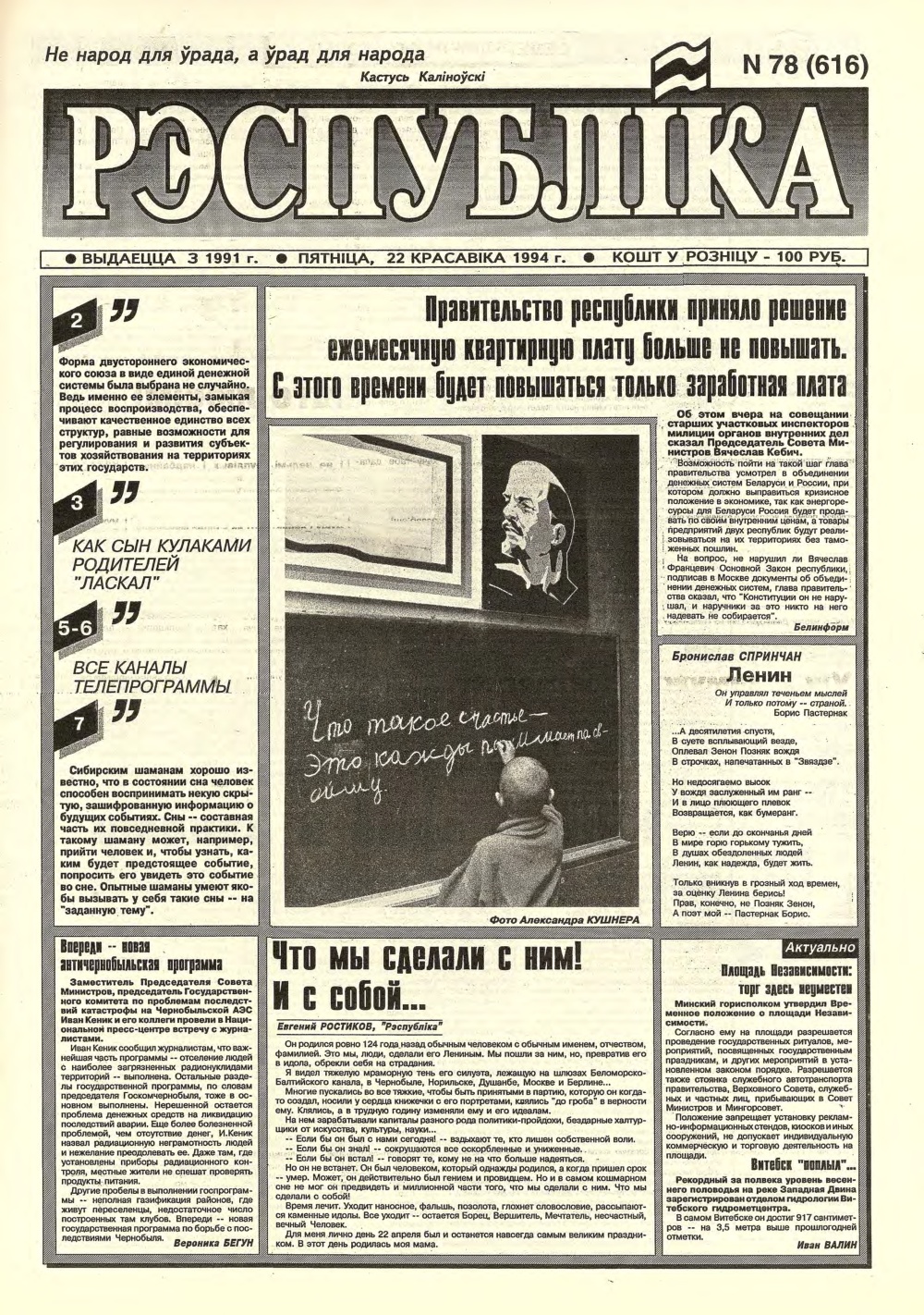 «Рэспубліка» — газета для тых, хто самастойна прымае рашэнні. Заснавальнік - Савет Міністраў Рэспублікі Беларусь. Выдаецца з чэрвеня 1991. Газета выходзіць 250 разоў у год. Аўтары апублікаваных матэрыялаў нясуць адказнасць за падбор і дакладнасць фактаў, іх меркаванні неабавязкова адлюстроўваюць пункт гледжання рэдакцыі. Рукапісы, фотаздымкі і малюнкі не рэцэнзуюцца I не вяртаюцца. Болей »