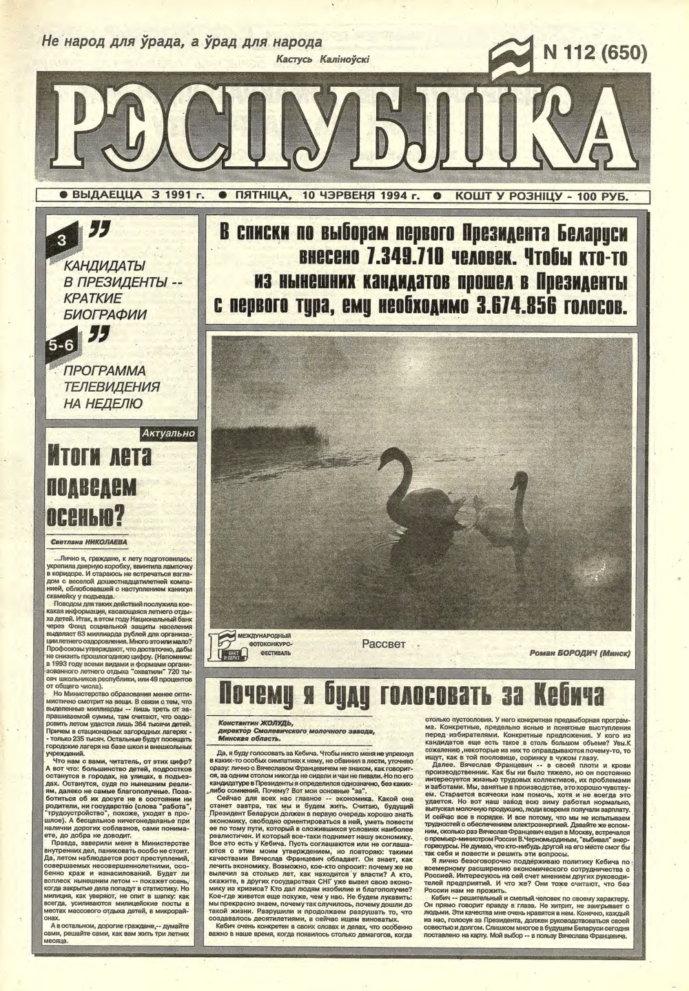 «Рэспубліка» — газета для тых, хто самастойна прымае рашэнні. Заснавальнік - Савет Міністраў Рэспублікі Беларусь. Выдаецца з чэрвеня 1991. Газета выходзіць 250 разоў у год. Аўтары апублікаваных матэрыялаў нясуць адказнасць за падбор і дакладнасць фактаў, іх меркаванні неабавязкова адлюстроўваюць пункт гледжання рэдакцыі. Рукапісы, фотаздымкі і малюнкі не рэцэнзуюцца I не вяртаюцца. More »