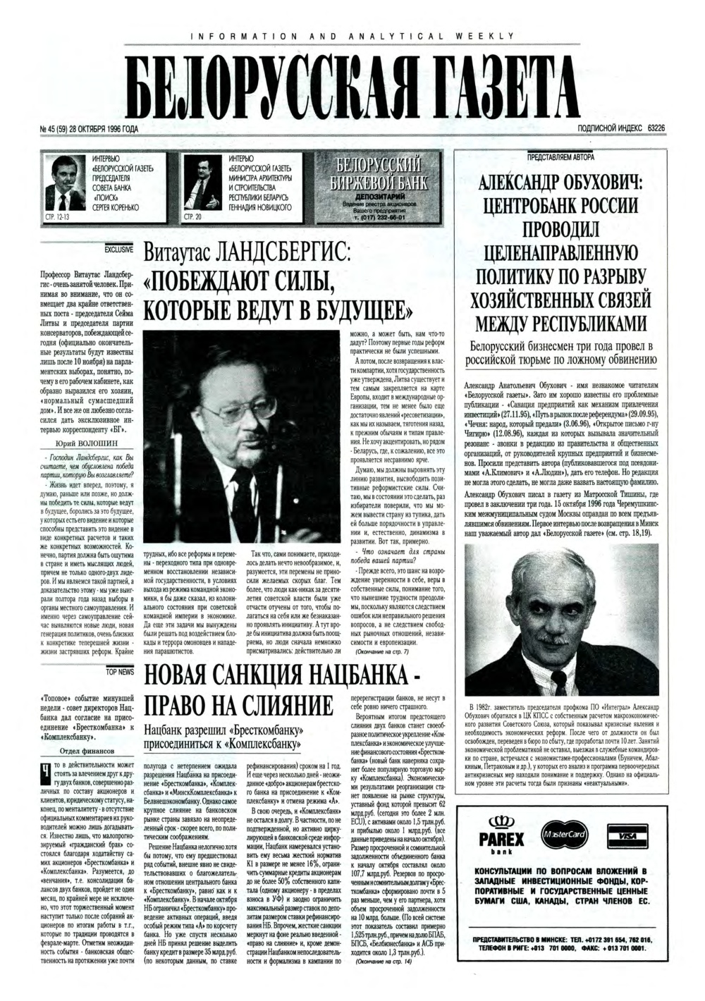 «БелГазета» —інфармацыйна-аналітычная рускамоўная газета, выходзіць штотыдзень у Беларусі. Да верасня 2005 года — «Беларуская газета». Займаецца незалежным асвятленнем падзей эканамічнага, унутрыпалітычнага, дзелавога, культурнага, грамадскага, міжнароднага жыцця Беларусі і блізкага замежжа (Расія, Украіна, краіны Балтыі). Асноўная тэматыка: дзяржава, палітыка, эканоміка, бізнэс, кампаніі і рынкі, грамадства, здарэнні, крымінал, шоу-біз... Болей »