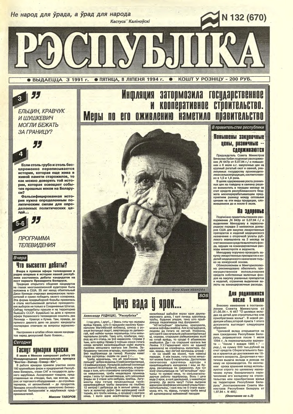 «Рэспубліка» — газета для тых, хто самастойна прымае рашэнні. Заснавальнік - Савет Міністраў Рэспублікі Беларусь. Выдаецца з чэрвеня 1991. Газета выходзіць 250 разоў у год. Аўтары апублікаваных матэрыялаў нясуць адказнасць за падбор і дакладнасць фактаў, іх меркаванні неабавязкова адлюстроўваюць пункт гледжання рэдакцыі. Рукапісы, фотаздымкі і малюнкі не рэцэнзуюцца I не вяртаюцца. Болей »