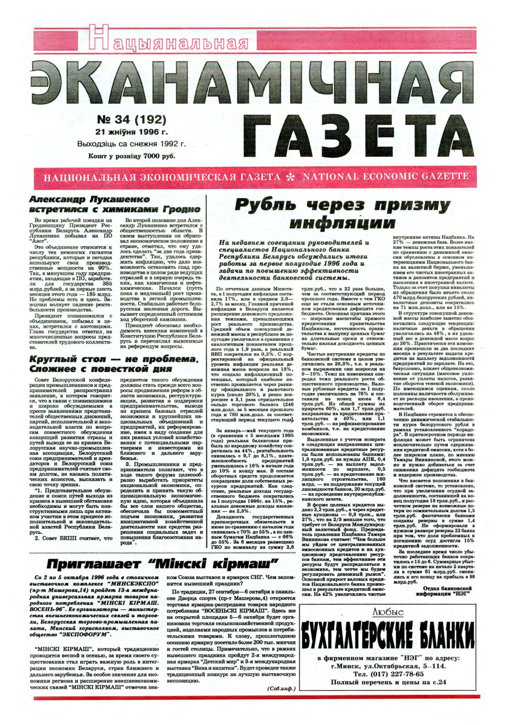 «Нацыянальная эканамічная газета» — «Нацыянальная эканамічная газета» — заснаваная часопісам «Чалавек і эканоміка». Найстарэйшае эканамічнае выданне ў Рэспубліцы Беларусь. Выходзіць са снежня 1992 года. Газета адной з першых узялася за эканамічную адукацыю, выхаванне спецыялістаў новай фармацыі ў перыяд пераходу ад адміністрацыйна-каманднай сістэмы гаспадарання да рынку. Праблемы макраэканомікі і фінансаў, бухгалтарскага ўліку і падатка... Болей »