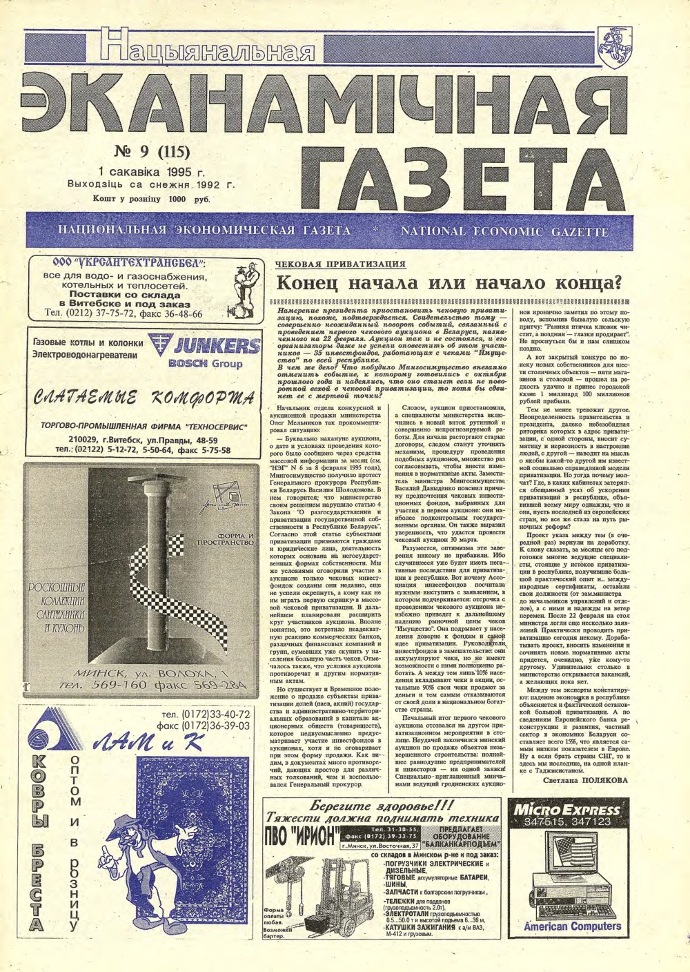 «Нацыянальная эканамічная газета» — «Нацыянальная эканамічная газета» — заснаваная часопісам «Чалавек і эканоміка». Найстарэйшае эканамічнае выданне ў Рэспубліцы Беларусь. Выходзіць са снежня 1992 года. Газета адной з першых узялася за эканамічную адукацыю, выхаванне спецыялістаў новай фармацыі ў перыяд пераходу ад адміністрацыйна-каманднай сістэмы гаспадарання да рынку. Праблемы макраэканомікі і фінансаў, бухгалтарскага ўліку і падатка... Болей »