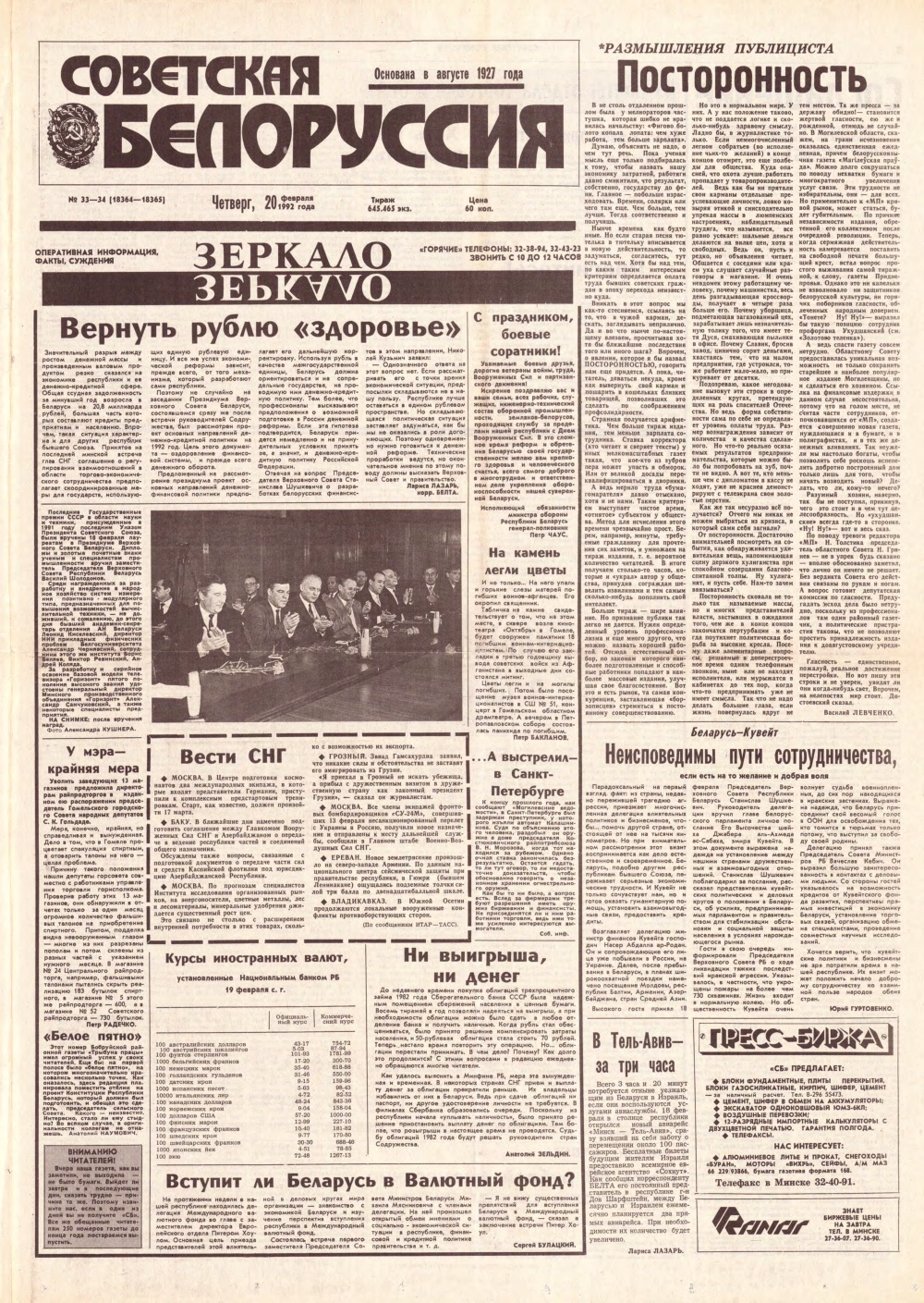 Советская Белоруссия, 33-34 (18364-18365) 1992