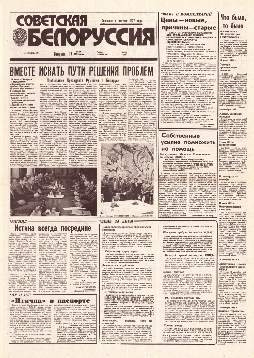«Советская Белоруссия» — орган Центрального Комитета Коммунистической партии Белоруссии, Верховного Совета и Совета Министров БССР. Белорусская общественно-политическая газета. Издаётся с августа 1927 года. Выходит 5 раз в неделю. Учредители — Администрация президента Республики Беларусь и редакционный совет. На апрель 2019 года тираж — 190 тыс. экземпляров. Крупнейшее печатное СМИ страны. При этом во многих СМИ неоднократно сообщалось ... Болей »