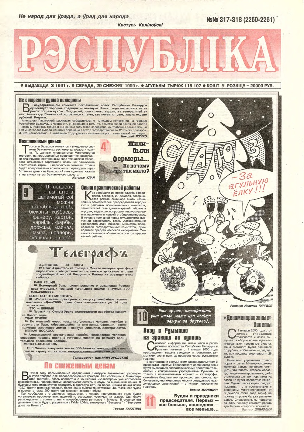 «Рэспубліка» — газета для тых, хто самастойна прымае рашэнні. Заснавальнік - Савет Міністраў Рэспублікі Беларусь. Выдаецца з чэрвеня 1991. Газета выходзіць 250 разоў у год. Аўтары апублікаваных матэрыялаў нясуць адказнасць за падбор і дакладнасць фактаў, іх меркаванні неабавязкова адлюстроўваюць пункт гледжання рэдакцыі. Рукапісы, фотаздымкі і малюнкі не рэцэнзуюцца і не вяртаюцца. Болей »