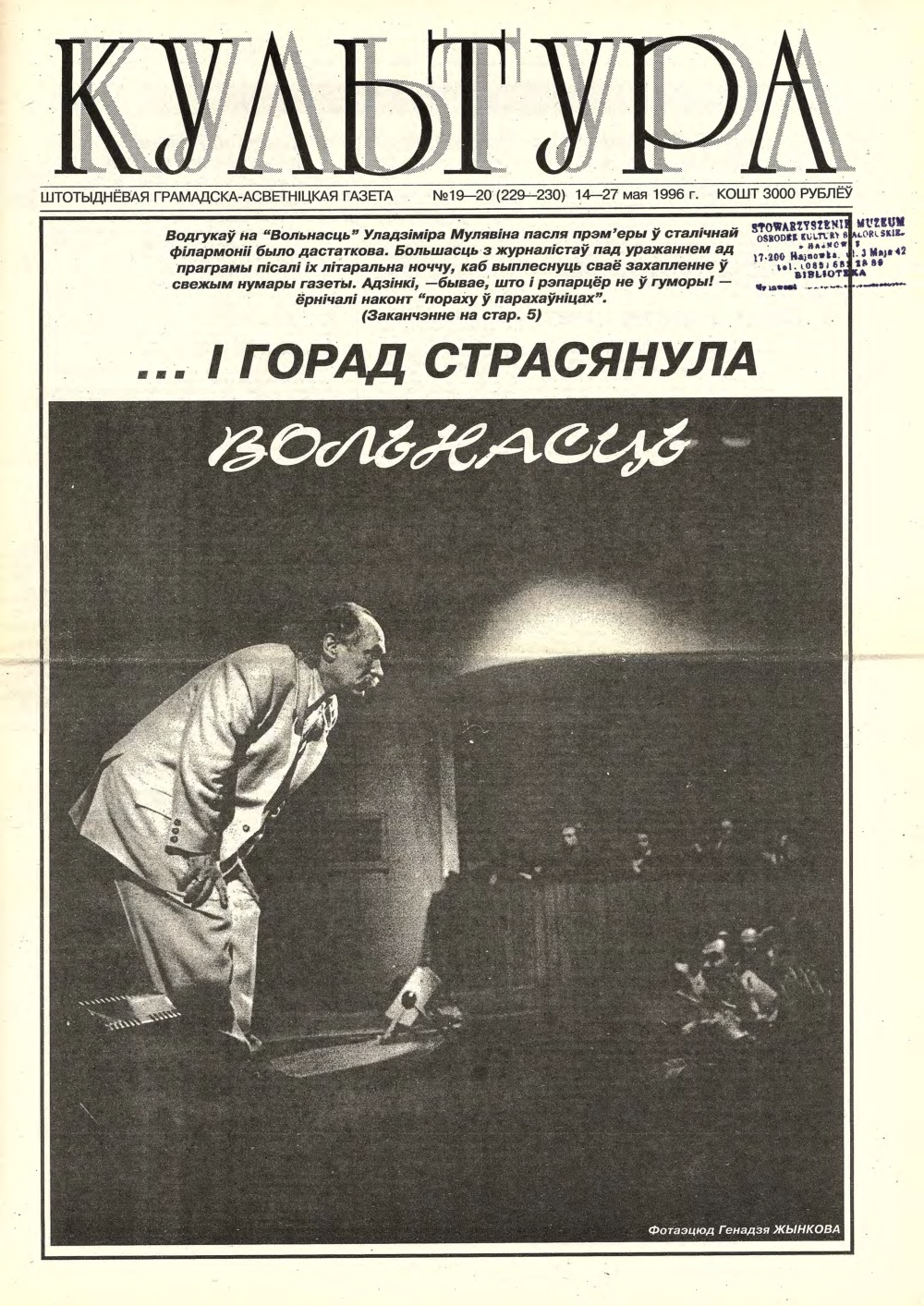 «Культура» — штотыднёвая грамадска-асветніцкая газета. Выдаецца з кастрычніка 1991 года ў Мінску на беларускай мове. Заснавальнік — Міністэрства культуры Рэспублікі Беларусь. З 2002 года з'яўляецца часткай рэдакцыйна-выдавецкай ўстановы «Культура і мастацтва», куды ўваходзіць разам з часопісам «Мастацтва». Болей »