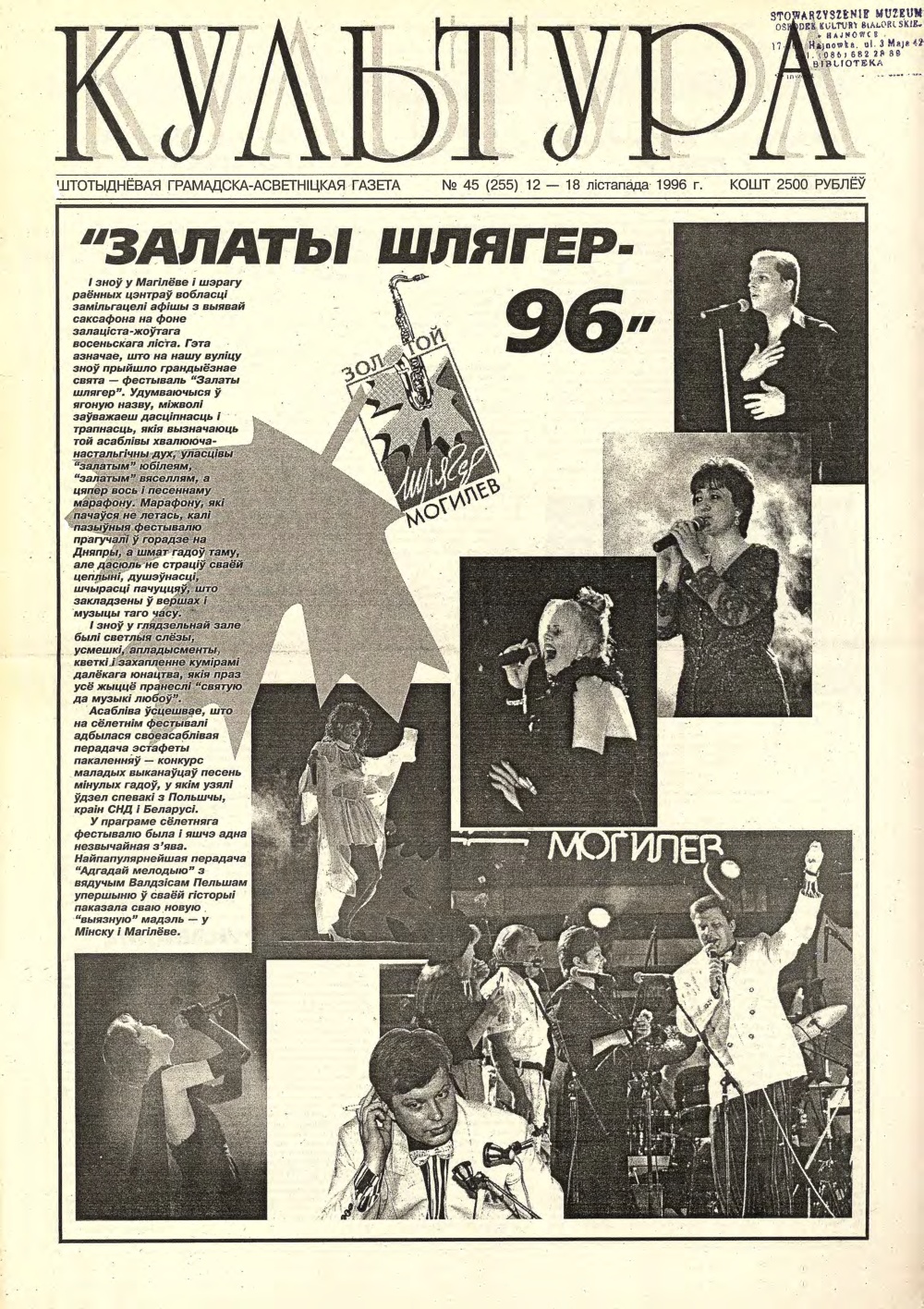 «Культура» — штотыднёвая грамадска-асветніцкая газета. Выдаецца з кастрычніка 1991 года ў Мінску на беларускай мове. Заснавальнік — Міністэрства культуры Рэспублікі Беларусь. З 2002 года з'яўляецца часткай рэдакцыйна-выдавецкай ўстановы «Культура і мастацтва», куды ўваходзіць разам з часопісам «Мастацтва». Болей »