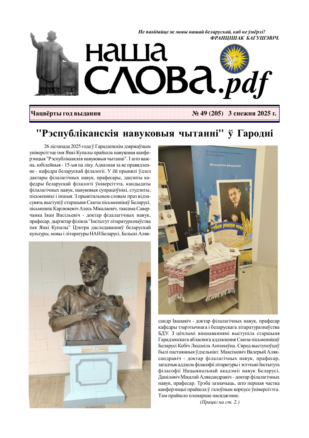 «Наша слова» — штотыднёвая газета. Змяшчае інфармацыйныя, публіцыстычныя, гістарычныя, палемічныя, агітацыйныя і мовазнаўчыя матэрыялы па праблемах беларускай мовы і культуры. Болей »