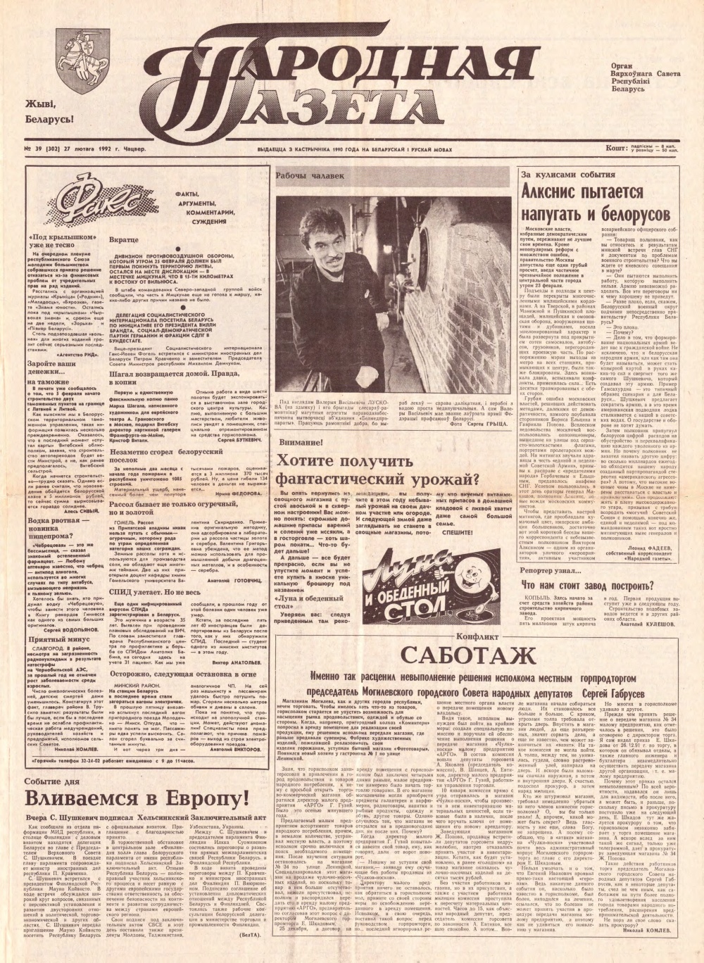 Народная газета, 39 (302) 1992