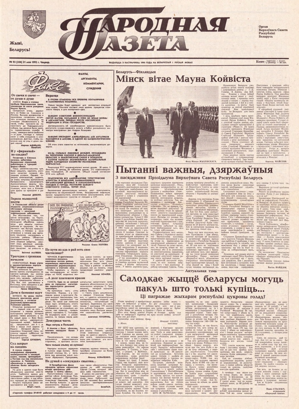 «Народная газета» — орган Вярхоўнага Савета Рэспублікі Беларусь. Выдавец: Адкрытае акцыянернае таварыства Народная газета. Выходзіць штодзённа, акрамя нядзелі і панядзелка, 250 разоў у год. Выдаецца з кастрычніка 1990 года на беларускай і рускай мовах. З 1990 па 1995 год пасаду галоўнага рэдактара «Народнай газеты» займаў Іосіф Сярэдзіч. З мая 1990 па студзень 1996 — дэпутат Вярхоўнага Савета XII склікання. Выданне займала ўмераную цэнт... Болей »