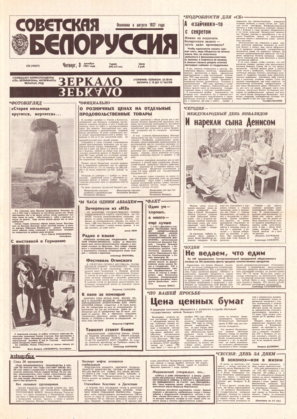 «Советская Белоруссия» — орган Центрального Комитета Коммунистической партии Белоруссии, Верховного Совета и Совета Министров БССР. Белорусская общественно-политическая газета. Издаётся с августа 1927 года. Выходит 5 раз в неделю. Учредители — Администрация президента Республики Беларусь и редакционный совет. На апрель 2019 года тираж — 190 тыс. экземпляров. Крупнейшее печатное СМИ страны. При этом во многих СМИ неоднократно сообщалось ... Болей »
