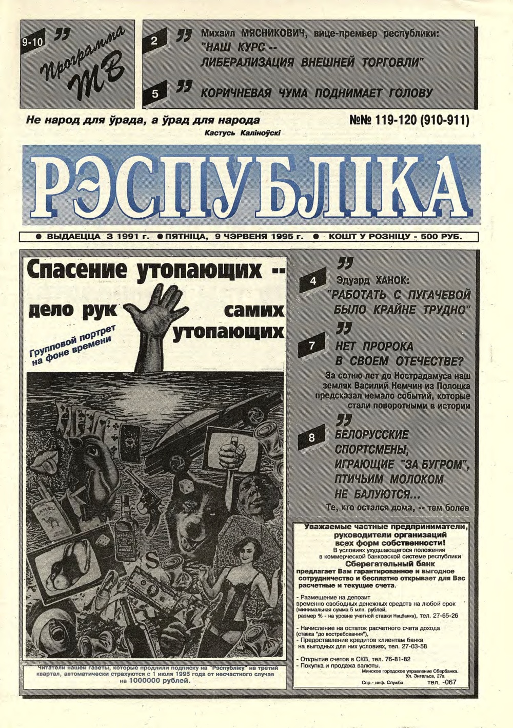 «Рэспубліка» — газета для тых, хто самастойна прымае рашэнні. Заснавальнік - Савет Міністраў Рэспублікі Беларусь. Выдаецца з чэрвеня 1991. Газета выходзіць 250 разоў у год. Аўтары апублікаваных матэрыялаў нясуць адказнасць за падбор і дакладнасць фактаў, іх меркаванні неабавязкова адлюстроўваюць пункт гледжання рэдакцыі. Рукапісы, фотаздымкі і малюнкі не рэцэнзуюцца і не вяртаюцца. Болей »