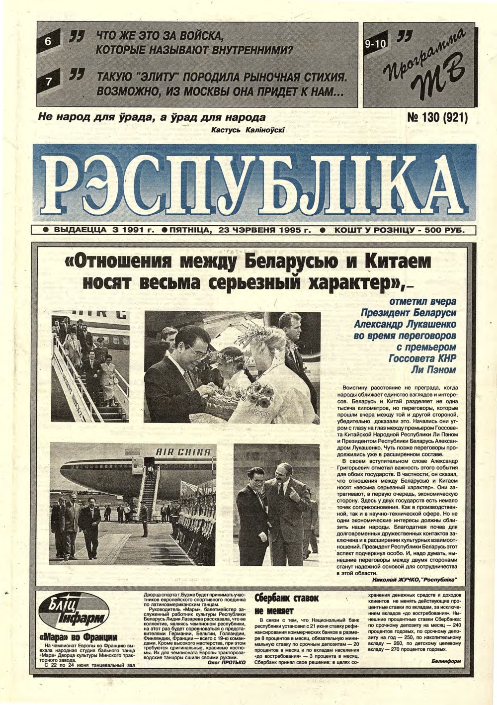 «Рэспубліка» — газета для тых, хто самастойна прымае рашэнні. Заснавальнік - Савет Міністраў Рэспублікі Беларусь. Выдаецца з чэрвеня 1991. Газета выходзіць 250 разоў у год. Аўтары апублікаваных матэрыялаў нясуць адказнасць за падбор і дакладнасць фактаў, іх меркаванні неабавязкова адлюстроўваюць пункт гледжання рэдакцыі. Рукапісы, фотаздымкі і малюнкі не рэцэнзуюцца і не вяртаюцца. Болей »