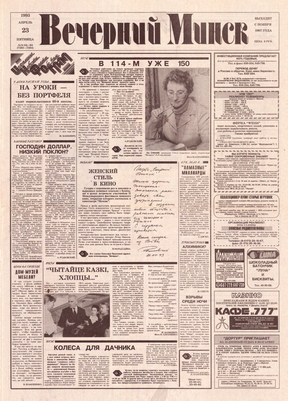 «Вечерний Минск» — выходит з ноября 1967 года. Учредитель: трудовой коллектив редакции газеты «Вечерний Минск». Газета издается на русском и белорусском языках, выходит 5 раз в неделю, кроме субботы и воскресенья — 250 раз в году. Болей »