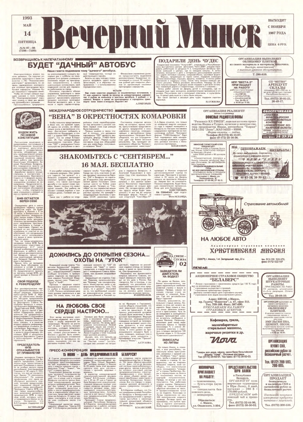 «Вечерний Минск» — выходит з ноября 1967 года. Учредитель: трудовой коллектив редакции газеты «Вечерний Минск». Газета издается на русском и белорусском языках, выходит 5 раз в неделю, кроме субботы и воскресенья — 250 раз в году. Болей »