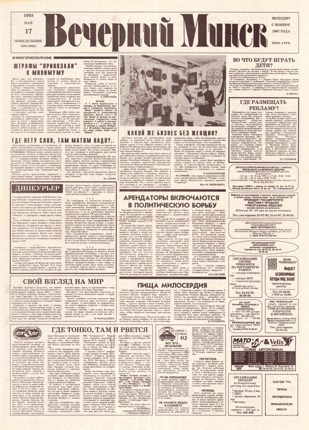 «Вечерний Минск» — выходит з ноября 1967 года. Учредитель: трудовой коллектив редакции газеты «Вечерний Минск». Газета издается на русском и белорусском языках, выходит 5 раз в неделю, кроме субботы и воскресенья — 250 раз в году. Болей »