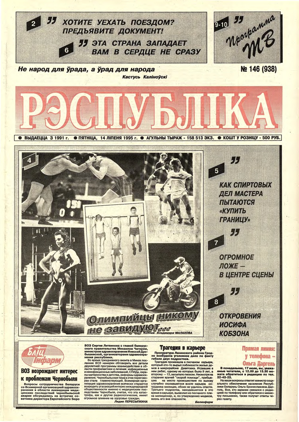 «Рэспубліка» — газета для тых, хто самастойна прымае рашэнні. Заснавальнік - Савет Міністраў Рэспублікі Беларусь. Выдаецца з чэрвеня 1991. Газета выходзіць 250 разоў у год. Аўтары апублікаваных матэрыялаў нясуць адказнасць за падбор і дакладнасць фактаў, іх меркаванні неабавязкова адлюстроўваюць пункт гледжання рэдакцыі. Рукапісы, фотаздымкі і малюнкі не рэцэнзуюцца і не вяртаюцца. Болей »