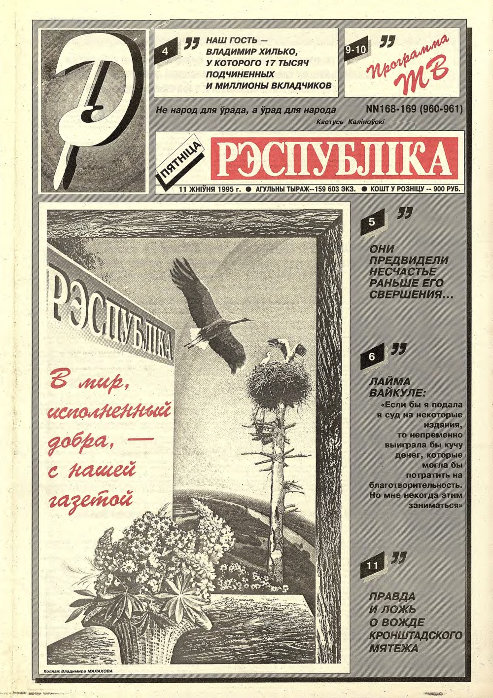 «Рэспубліка» — газета для тых, хто самастойна прымае рашэнні. Заснавальнік - Савет Міністраў Рэспублікі Беларусь. Выдаецца з чэрвеня 1991. Газета выходзіць 250 разоў у год. Аўтары апублікаваных матэрыялаў нясуць адказнасць за падбор і дакладнасць фактаў, іх меркаванні неабавязкова адлюстроўваюць пункт гледжання рэдакцыі. Рукапісы, фотаздымкі і малюнкі не рэцэнзуюцца і не вяртаюцца. Болей »