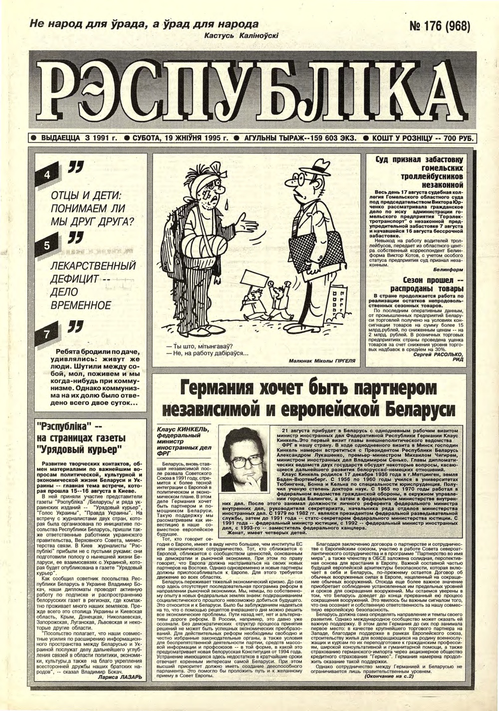 «Рэспубліка» — газета для тых, хто самастойна прымае рашэнні. Заснавальнік - Савет Міністраў Рэспублікі Беларусь. Выдаецца з чэрвеня 1991. Газета выходзіць 250 разоў у год. Аўтары апублікаваных матэрыялаў нясуць адказнасць за падбор і дакладнасць фактаў, іх меркаванні неабавязкова адлюстроўваюць пункт гледжання рэдакцыі. Рукапісы, фотаздымкі і малюнкі не рэцэнзуюцца і не вяртаюцца. Болей »
