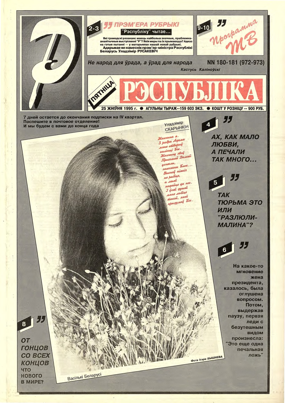 «Рэспубліка» — газета для тых, хто самастойна прымае рашэнні. Заснавальнік - Савет Міністраў Рэспублікі Беларусь. Выдаецца з чэрвеня 1991. Газета выходзіць 250 разоў у год. Аўтары апублікаваных матэрыялаў нясуць адказнасць за падбор і дакладнасць фактаў, іх меркаванні неабавязкова адлюстроўваюць пункт гледжання рэдакцыі. Рукапісы, фотаздымкі і малюнкі не рэцэнзуюцца і не вяртаюцца. Болей »