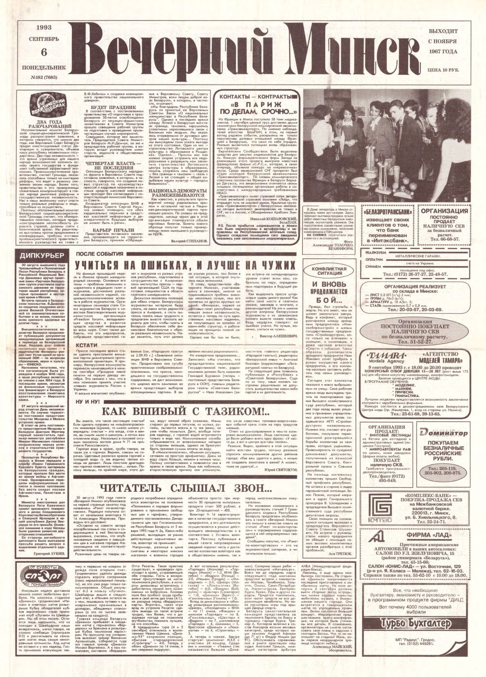 «Вечерний Минск» — выходит з ноября 1967 года. Учредитель: трудовой коллектив редакции газеты «Вечерний Минск». Газета издается на русском и белорусском языках, выходит 5 раз в неделю, кроме субботы и воскресенья — 250 раз в году. Болей »