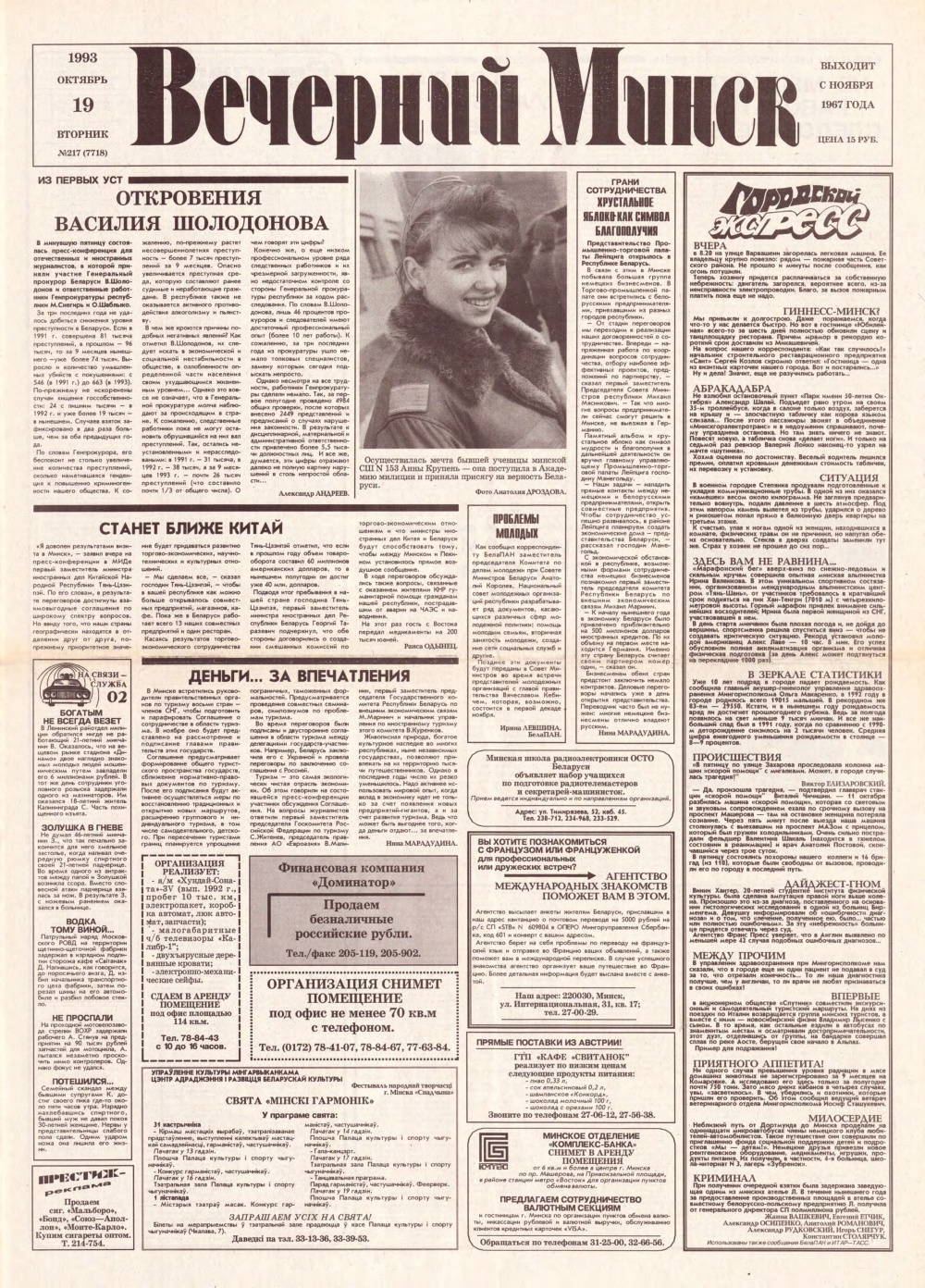 Выдавец: трудовой коллектив редакции газеты Вечерний Минск