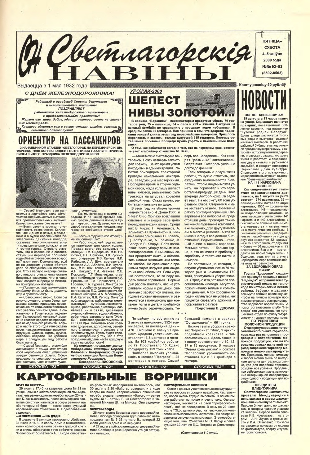 «Ленінская перамога», «Агнi камунiзму», «Светлагорскiя навiны» — тры назвы, але адна газета. З першага нумара, які выйшаў 1 мая 1932 года, і па сённяшні дзень газета актуальная, аператыўная, дакладная і цікавая. «Светлагорскiя навiны» — гэта, па сутнасцi, энцыклапедыя роднага краю. Па яе старонках можна ўзнавіць гісторыю будаўніцтва горада, вялікіх і малых прадпрыемстваў, сацыяльнай інфраструктуры Светлагоршчыны. Газета не страціла сва... Болей »