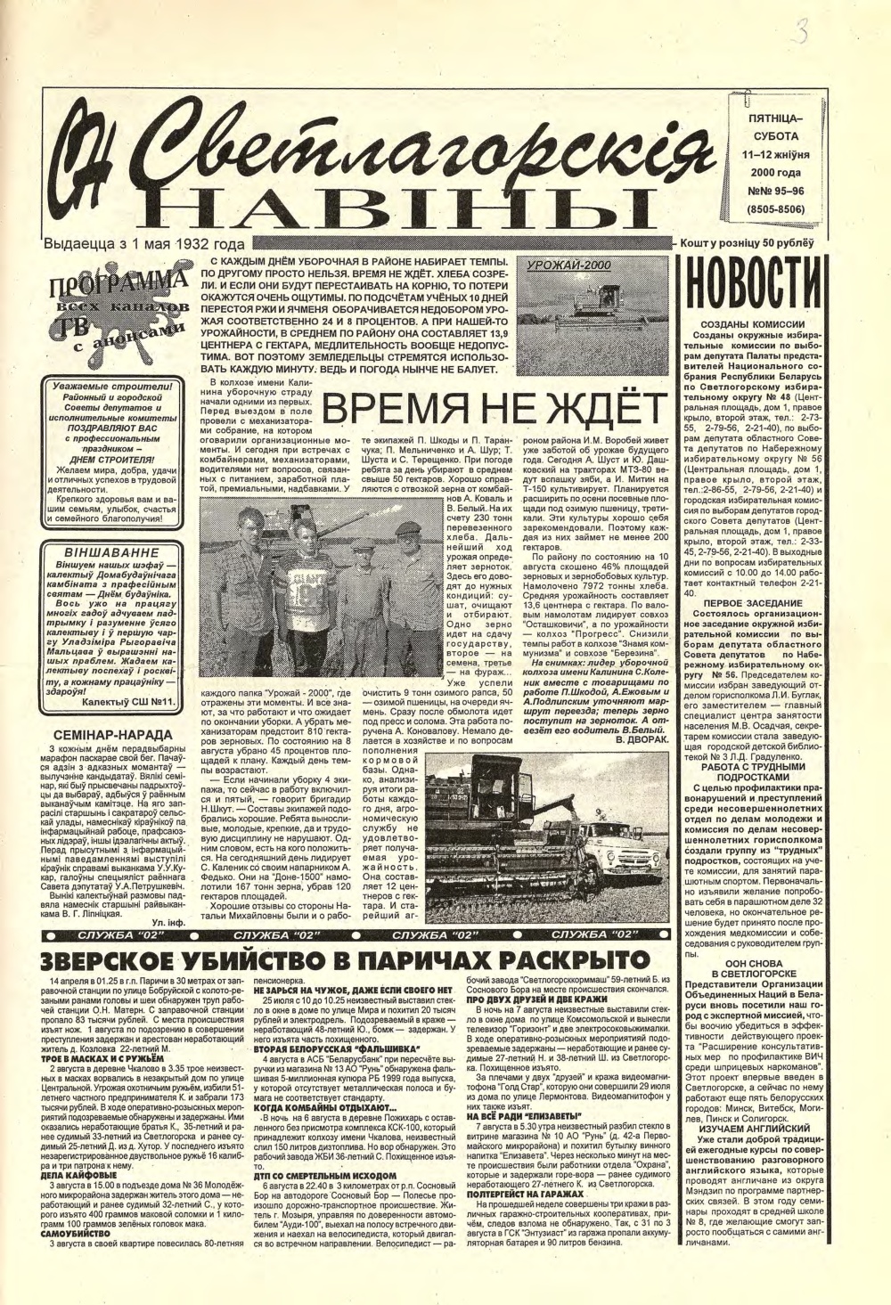Светлагорскія навіны, 91 (8501) 2000