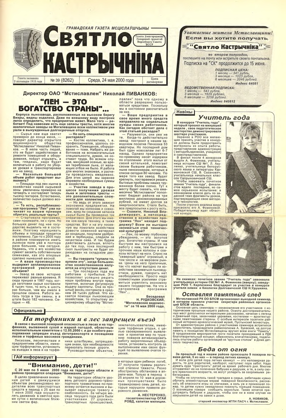 Выдавец: Мсціслаўскі раённы выканаўчы камітэт, Мсціслаўскі раённы Савет дэпутатаў, працоўны калектыў рэдакцыі