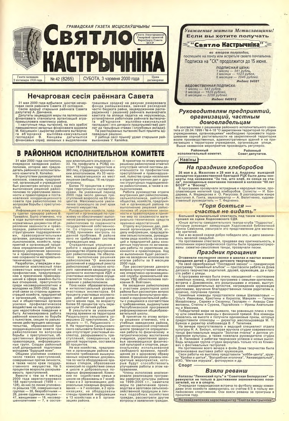 Выдавец: Мсціслаўскі раённы выканаўчы камітэт, Мсціслаўскі раённы Савет дэпутатаў, працоўны калектыў рэдакцыі
