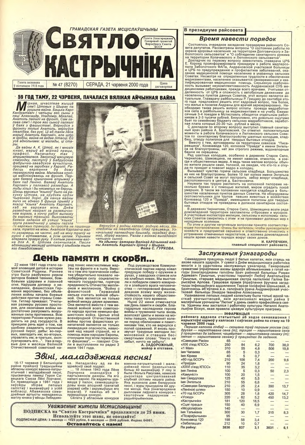 Выдавец: Мсціслаўскі раённы выканаўчы камітэт, Мсціслаўскі раённы Савет дэпутатаў, працоўны калектыў рэдакцыі