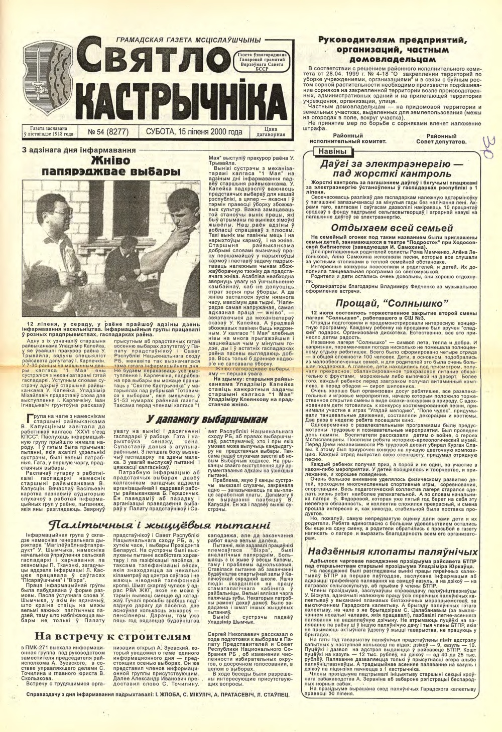 Святло кастрычніка, 54 (8277) 2000