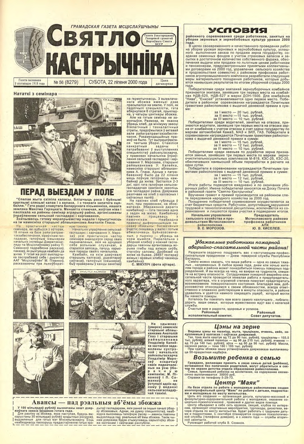 Выдавец: Мсціслаўскі раённы выканаўчы камітэт, Мсціслаўскі раённы Савет дэпутатаў, працоўны калектыў рэдакцыі