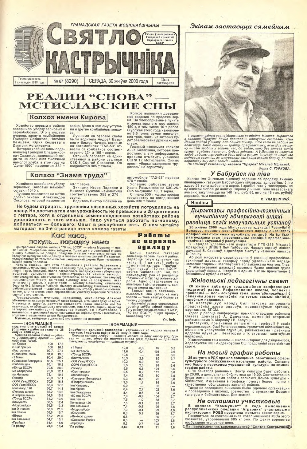 Выдавец: Мсціслаўскі раённы выканаўчы камітэт, Мсціслаўскі раённы Савет дэпутатаў, працоўны калектыў рэдакцыі
