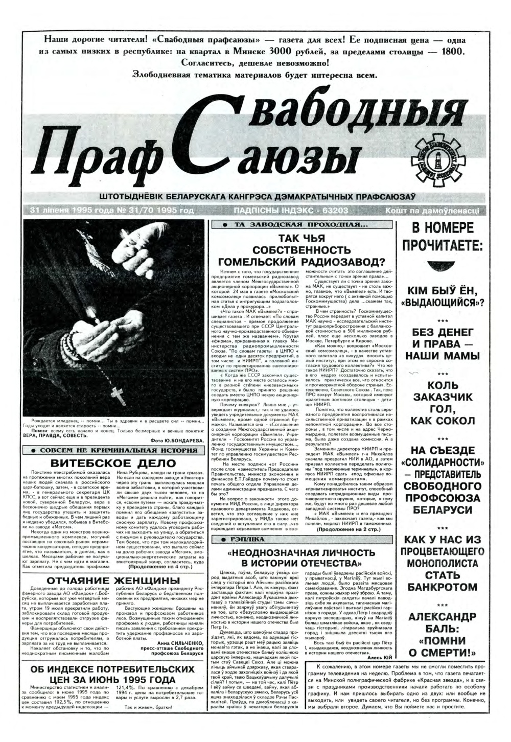 «Свабодныя прафсаюзы» — выдаецца з лістапада 1993 года на беларускай і рускай мовах. Заснавзльнікі: Беларускі кангрэс дэмакратычных прафсаюзаў. Рукапісы не рэцэнзуюцца і не вяртаюцца. Рэдакцыя можа друкаваць артыкулы ў парадку абмеркавання, не падзяляючы пункту гледжання аўтара. Болей »