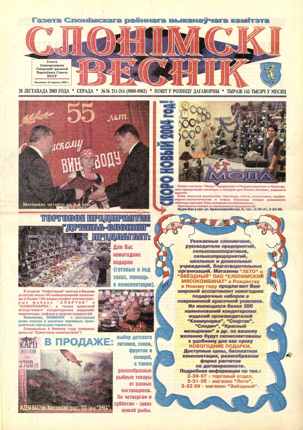 «Слонімскі веснік» — Грамадска-палітычная газета. Заснавана 26 верасня 1929 года. Заснавальнік: Слонімскі раённы Выканаўчы камітэт. Газета выходзіць 174 нумары ў год на беларускай і рускай мовах, аб’ём — два друкаваньш аркушы. Рэдакцыя можа друкаваць матэрыялы ў парадку абмеркавання, не падзяляючы пункту погляду аўтара. Пры перадрукоўцы матэрыялаў спасылка на СВ абавязковая. Болей »