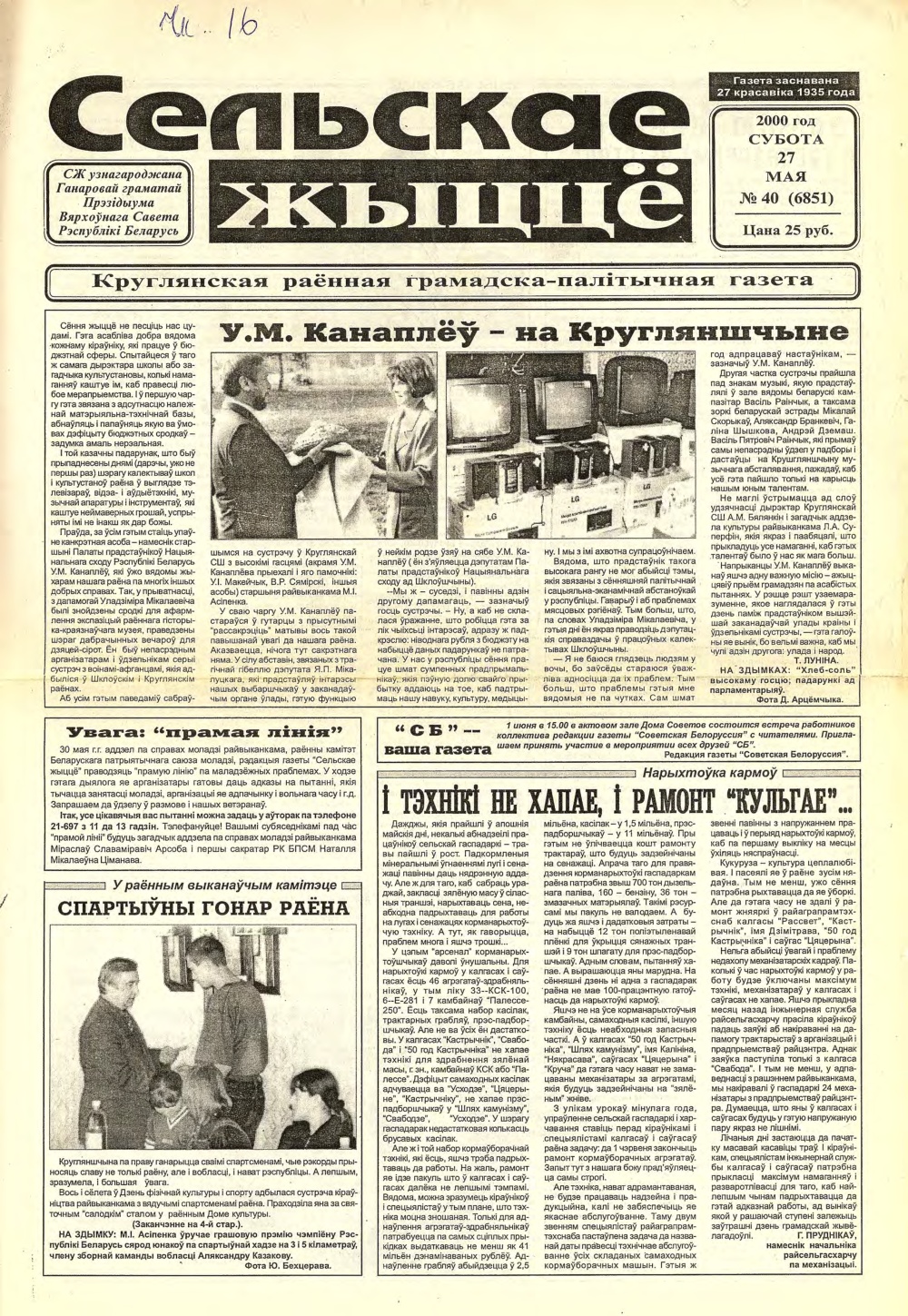 «Сельскае жыццё» — Круглянская раённая грамадска-палітычная газета. Першы нумар Круглянскай раённай газеты выйшаў 27 красавіка 1935 года пад назвай "Бальшавік Кругляншчыны". У гады Вялікай Айчыннай вайны газета выходзіла пад назвай "Партызанскі шлях". У кожным нумары яна даносіла да жыхароў раёна ўсю праўду пра падзеі на франтах, расказвала пра баявыя справы мясцовых партызан і падпольшчыкаў. У першыя пасляваенныя гады раённая газета на... Болей »