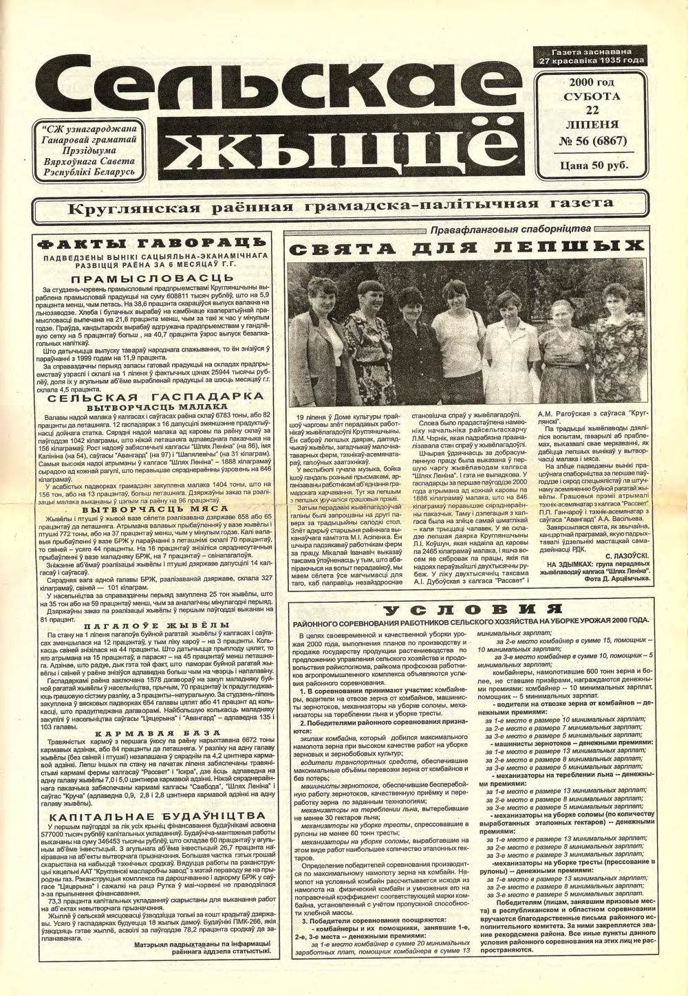 «Сельскае жыццё» — Круглянская раённая грамадска-палітычная газета. Першы нумар Круглянскай раённай газеты выйшаў 27 красавіка 1935 года пад назвай "Бальшавік Кругляншчыны". У гады Вялікай Айчыннай вайны газета выходзіла пад назвай "Партызанскі шлях". У кожным нумары яна даносіла да жыхароў раёна ўсю праўду пра падзеі на франтах, расказвала пра баявыя справы мясцовых партызан і падпольшчыкаў. У першыя пасляваенныя гады раённая газета на... Болей »