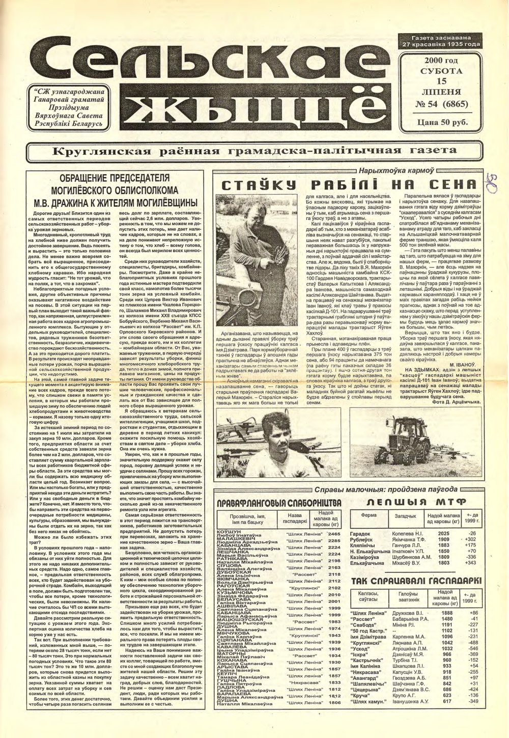 Выдавец: Круглянскі раённы Выканаўчы камітэт, Круглянскі раённы Савет дэпутатаў, працоўны калектыў рэдакцыі газеты