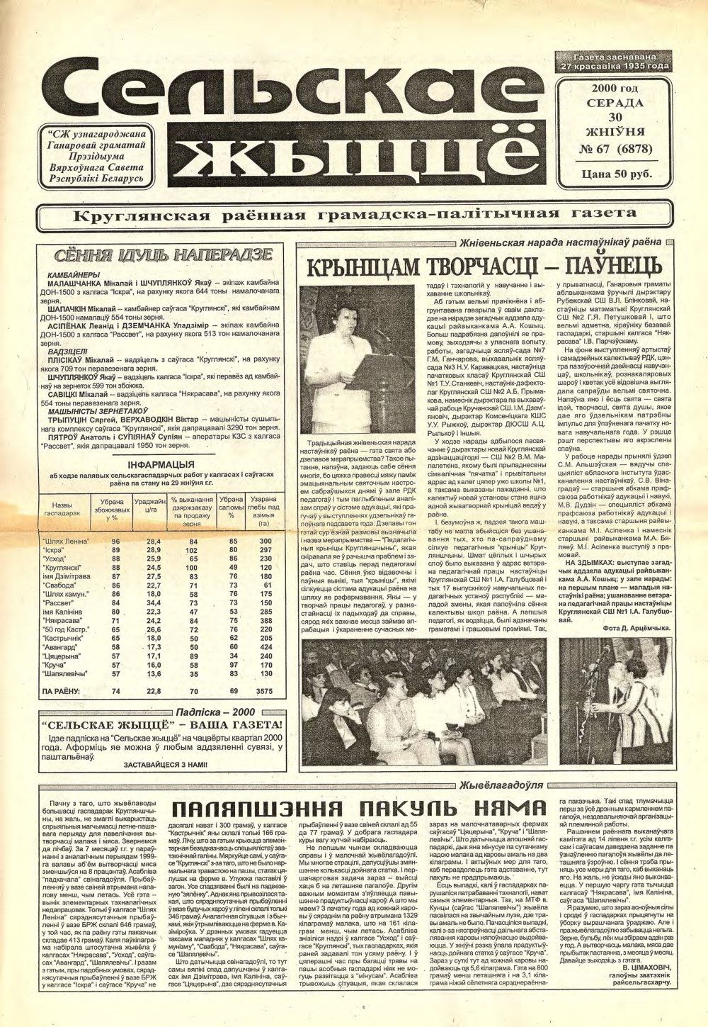 Выдавец: Круглянскі раённы Выканаўчы камітэт, Круглянскі раённы Савет дэпутатаў, працоўны калектыў рэдакцыі газеты