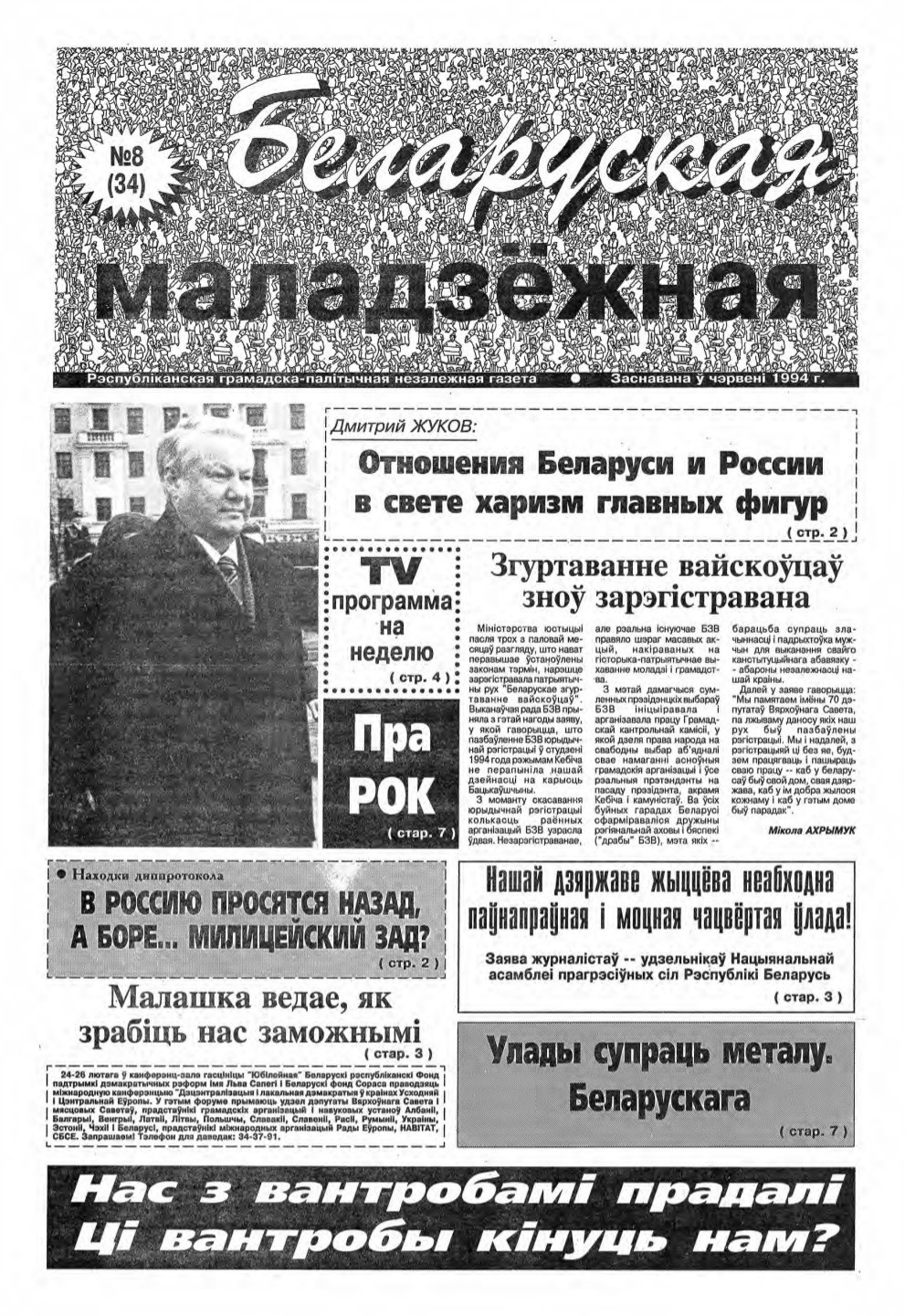 «Беларуская маладзёжная» — рэспубліканская грамадска-палітычная незалежная газета. (1994 - 2002) - беларуская газэта, дадатак да аднайменнай радыёстанцыі. Зарэгістраваная ў сакавіку 1994 году. У ёй друкаваліся расшыфроўкі радыйных гутарак, анонсы этэраў і ўсё, што не зьмяшчалася ў радыёфармат. Калі радыёстанцыю зачынілі, газэта засталася. Галоўны рэдактар — Тацьцяна Мельнічук. Традыцыйны фармат — 8 старонак А3. Газэта асьвятляла нараджэ... Болей »