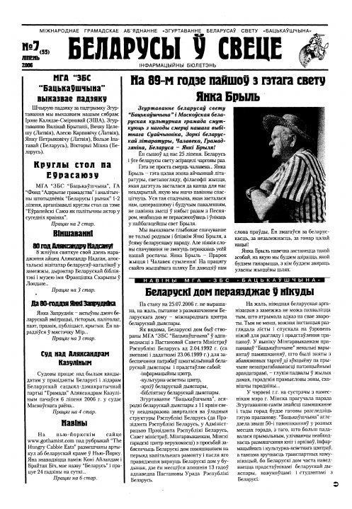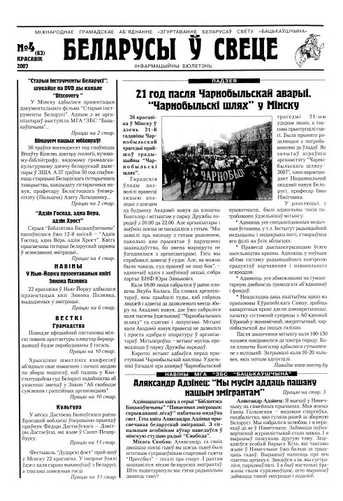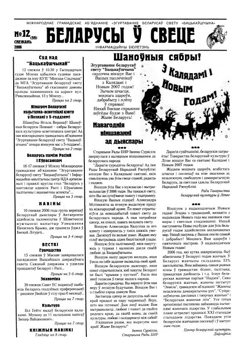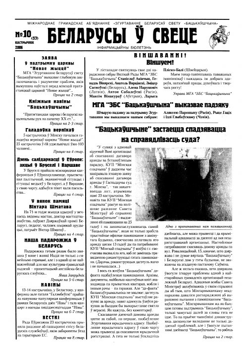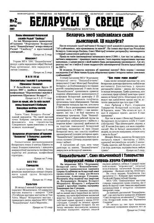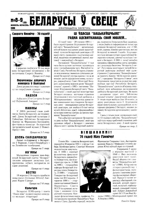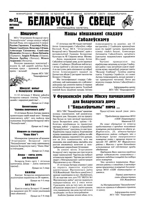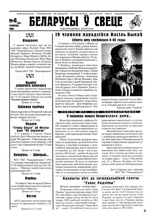 Згуртаванне беларусаў свету «Бацькаўшчына», ЗБС «Бацькаўшчына» — міжнароднае грамадскае аб'яднанне. Створана дзеля захавання беларускай прысутнасці ў свеце, яднання ў адзіную супольнасць усіх беларусаў, павышэння аўтарытэту беларускай нацыі на міжнародным узроўні. Першым Прэзідэнтам ЗБС «Бацькаўшчына» ў 1990 быў абраны Васіль Быкаў, Старшынёй Рады — Яўген Лецка. Першы з'езд беларусаў свету адбыўся 8-10 ліпеня 1993 г. ў Мінску. Прэзідэнт... Болей »