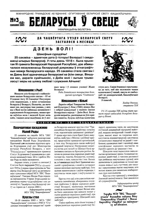 Бюлетэнь Інфармацыйнага цэнтра МГА ЗБС Бацькаўшчына