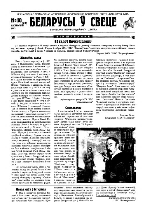 Згуртаванне беларусаў свету «Бацькаўшчына», ЗБС «Бацькаўшчына» — міжнароднае грамадскае аб'яднанне. Створана дзеля захавання беларускай прысутнасці ў свеце, яднання ў адзіную супольнасць усіх беларусаў, павышэння аўтарытэту беларускай нацыі на міжнародным узроўні. Першым Прэзідэнтам ЗБС «Бацькаўшчына» ў 1990 быў абраны Васіль Быкаў, Старшынёй Рады — Яўген Лецка. Першы з'езд беларусаў свету адбыўся 8-10 ліпеня 1993 г. ў Мінску. Прэзідэнт... Болей »