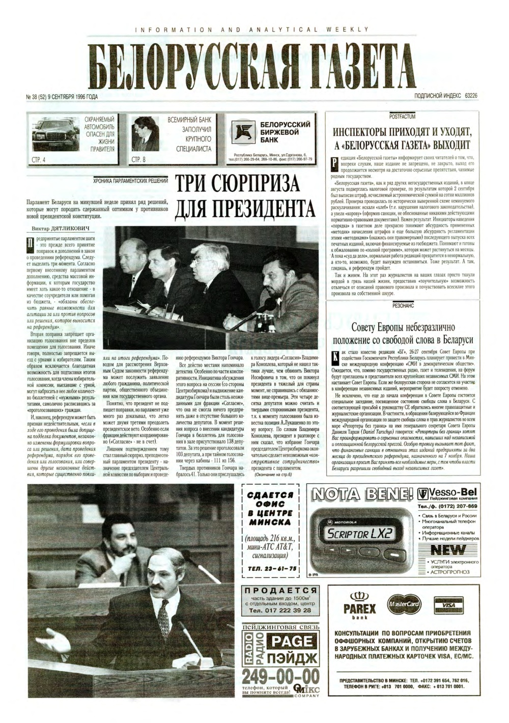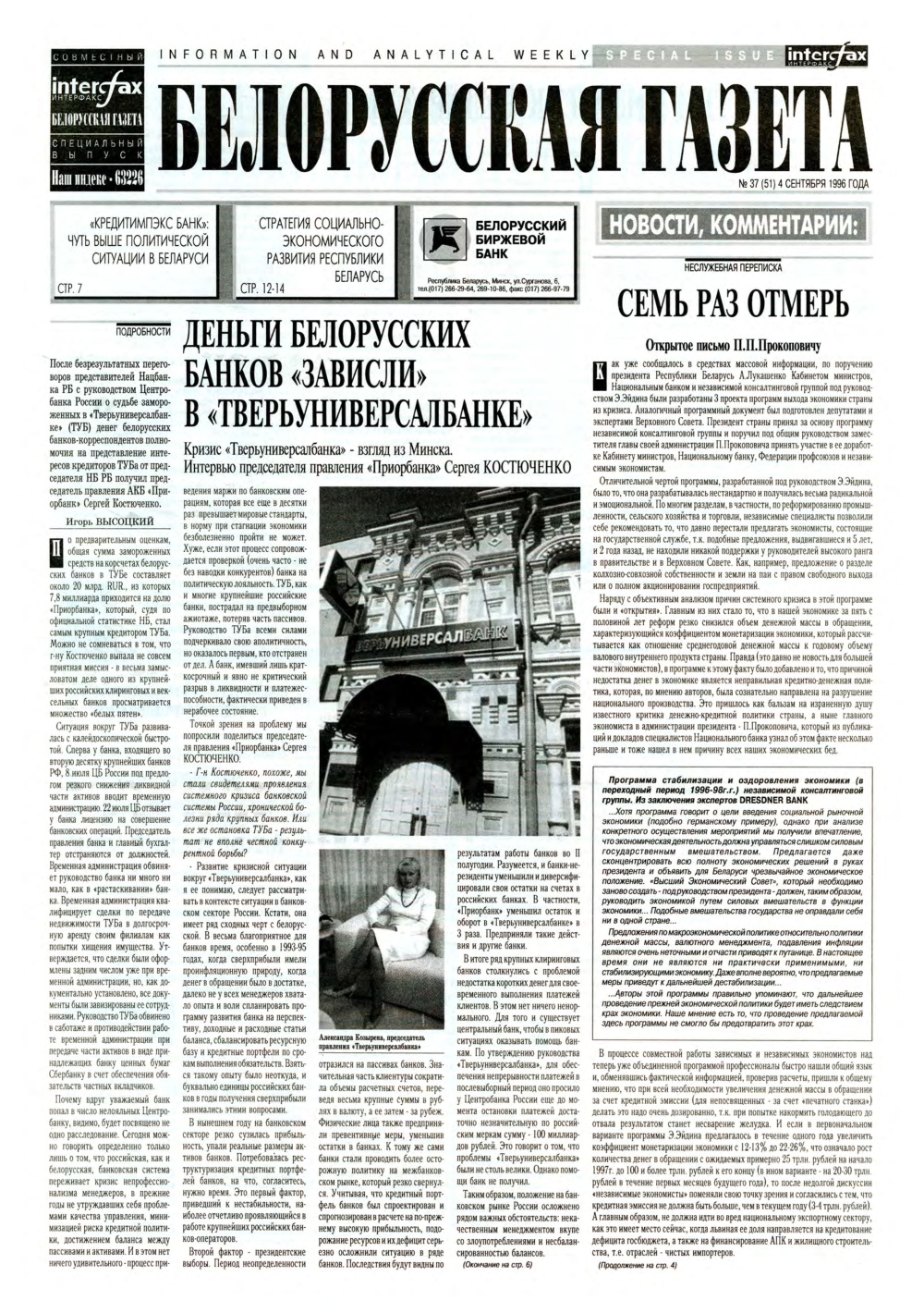 «БелГазета» —інфармацыйна-аналітычная рускамоўная газета, выходзіць штотыдзень у Беларусі. Да верасня 2005 года — «Беларуская газета». Займаецца незалежным асвятленнем падзей эканамічнага, унутрыпалітычнага, дзелавога, культурнага, грамадскага, міжнароднага жыцця Беларусі і блізкага замежжа (Расія, Украіна, краіны Балтыі). Асноўная тэматыка: дзяржава, палітыка, эканоміка, бізнэс, кампаніі і рынкі, грамадства, здарэнні, крымінал, шоу-біз... Болей »