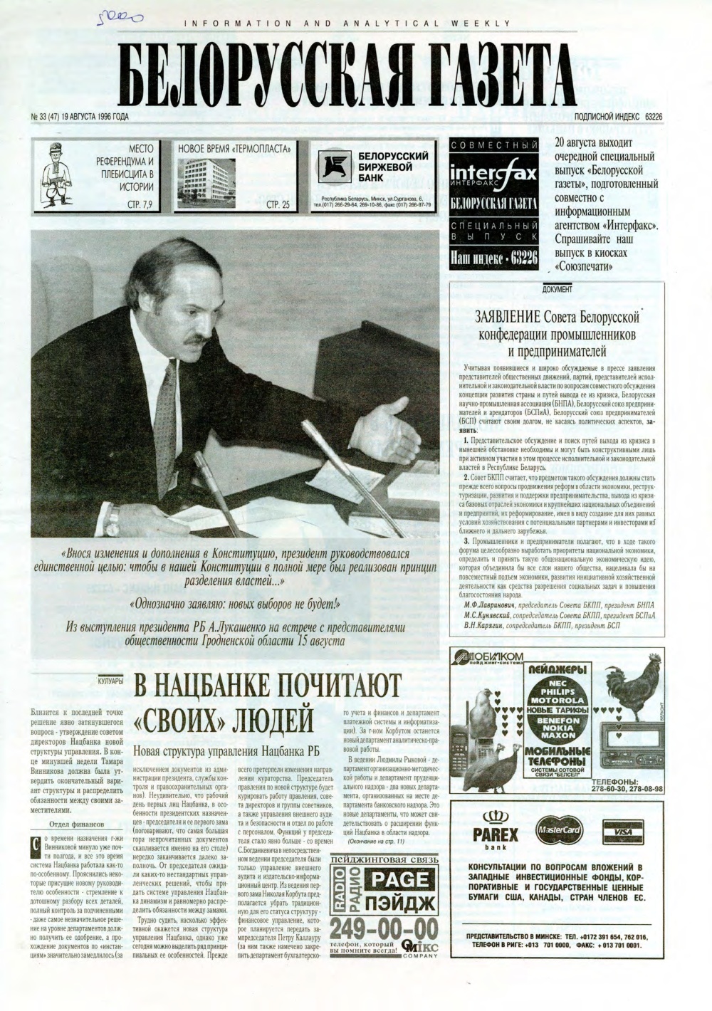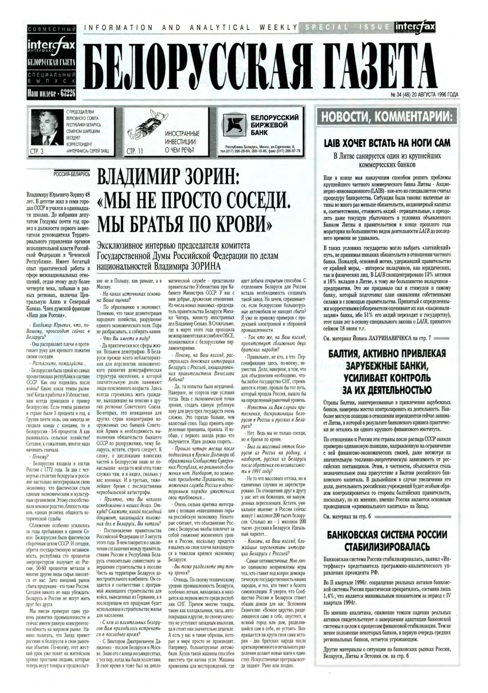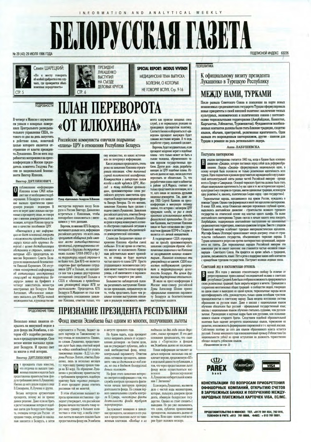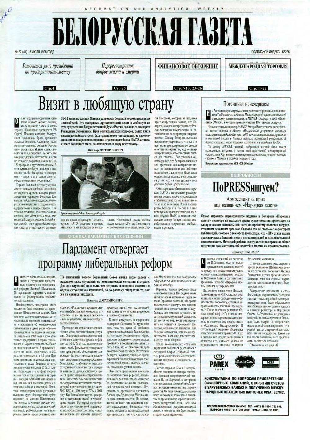 «БелГазета» —інфармацыйна-аналітычная рускамоўная газета, выходзіць штотыдзень у Беларусі. Да верасня 2005 года — «Беларуская газета». Займаецца незалежным асвятленнем падзей эканамічнага, унутрыпалітычнага, дзелавога, культурнага, грамадскага, міжнароднага жыцця Беларусі і блізкага замежжа (Расія, Украіна, краіны Балтыі). Асноўная тэматыка: дзяржава, палітыка, эканоміка, бізнэс, кампаніі і рынкі, грамадства, здарэнні, крымінал, шоу-біз... Болей »
