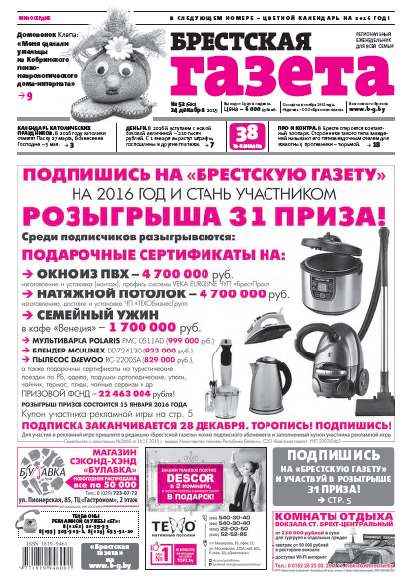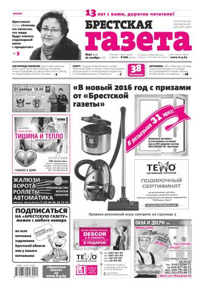 «Брестская газета» на региональном рынке СМИ позиционирует себя как одна газета для всей семьи. При выборе тематики публикуемых материалов мы руководствуемся принципом: ШИРОКИЙ ВЗГЛЯД, ВНИМАНИЕ К ДЕТАЛЯМ. При этом фундаментальной основой всех публикаций является: ОБЪЕКТИВНОСТЬ. Основными составляющими в содержательном плане являются местные новости, материалы социально-бытовой, экономической и правовой направленности Болей »