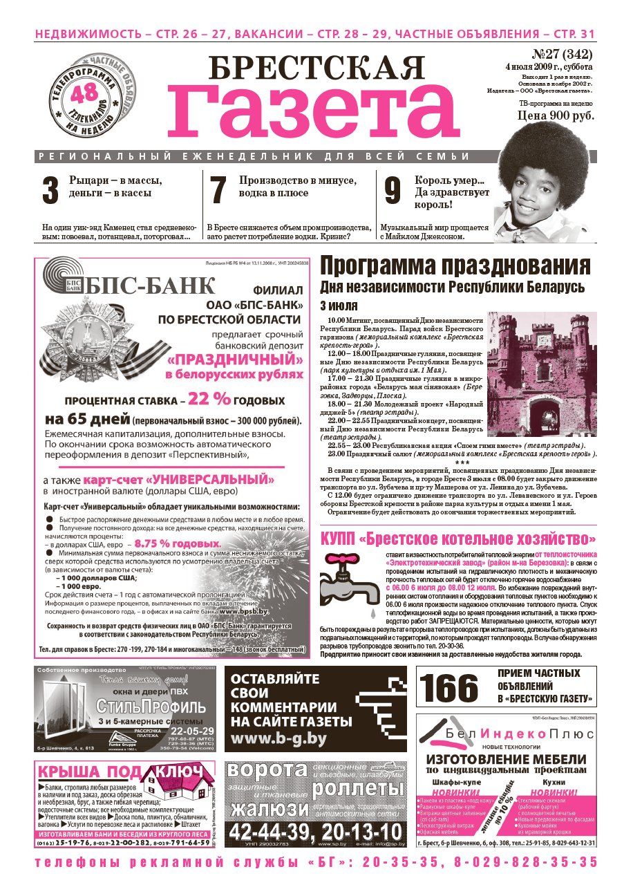 Брестская газета, 27 (342) 2009