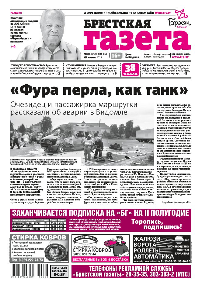 «Брестская газета» на региональном рынке СМИ позиционирует себя как одна газета для всей семьи. При выборе тематики публикуемых материалов мы руководствуемся принципом: ШИРОКИЙ ВЗГЛЯД, ВНИМАНИЕ К ДЕТАЛЯМ. При этом фундаментальной основой всех публикаций является: ОБЪЕКТИВНОСТЬ. Основными составляющими в содержательном плане являются местные новости, материалы социально-бытовой, экономической и правовой направленности. Болей »